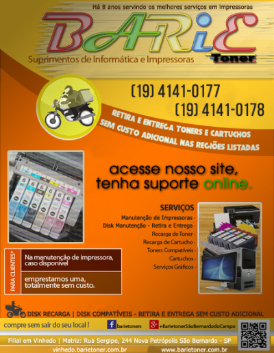 BARIE NOVA UNIDADE EM VINHEDO - Manutenção de impressoras, recarga de toner, toners importados 100% novos com excelente valor, e garantia total.